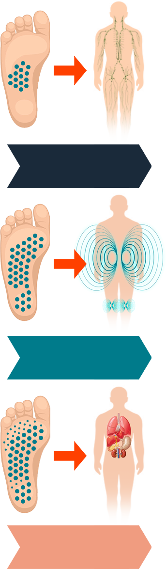 290 akupresurních výstupků a 5 biomagnetů s hlubokým buněčným účinkem o síle 970 gaussů stimulují receptory na chodidlech. Přirozené magnetické a akupresurní impulsy, které vložky vytvářejí, působí přímo na bolavá místa v těle a trvale odstraňují bolest – bez ohledu na její zdroj nebo příčinu.